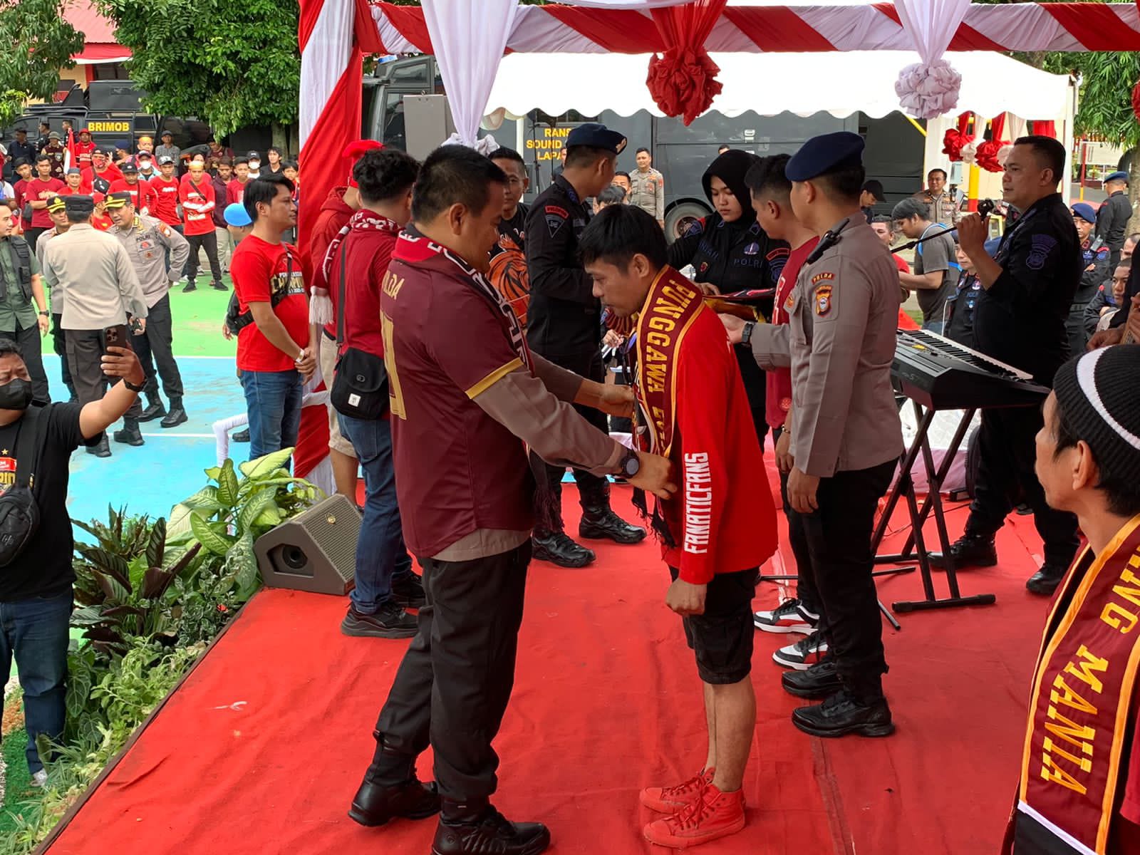 Kapolda Sulsel Irjen Pol Setyo Budi Moempoeni Harso, S.H., M.Hum. bersama para PJU Polda Sulsel berbaur bersama para suporter PSM Makassar di Lapangan Mako Batalyon B Pelopor Satbrimob Polda Sulse, Sabtu, (16/04)