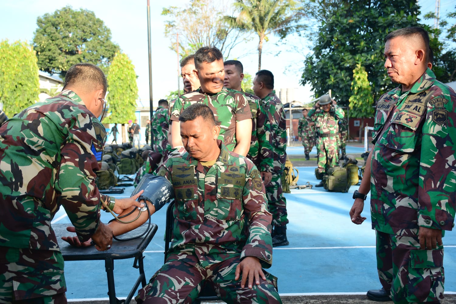 Latihan yang diawali dengan pemeriksaan kesehatan oleh Bintara Kesehatan (Bakes) dan senam pemanasan ini guna memastikan prajurit dalam kondisi sehat serta terhindar dari cidera pada saat pelaksanaan latihan.