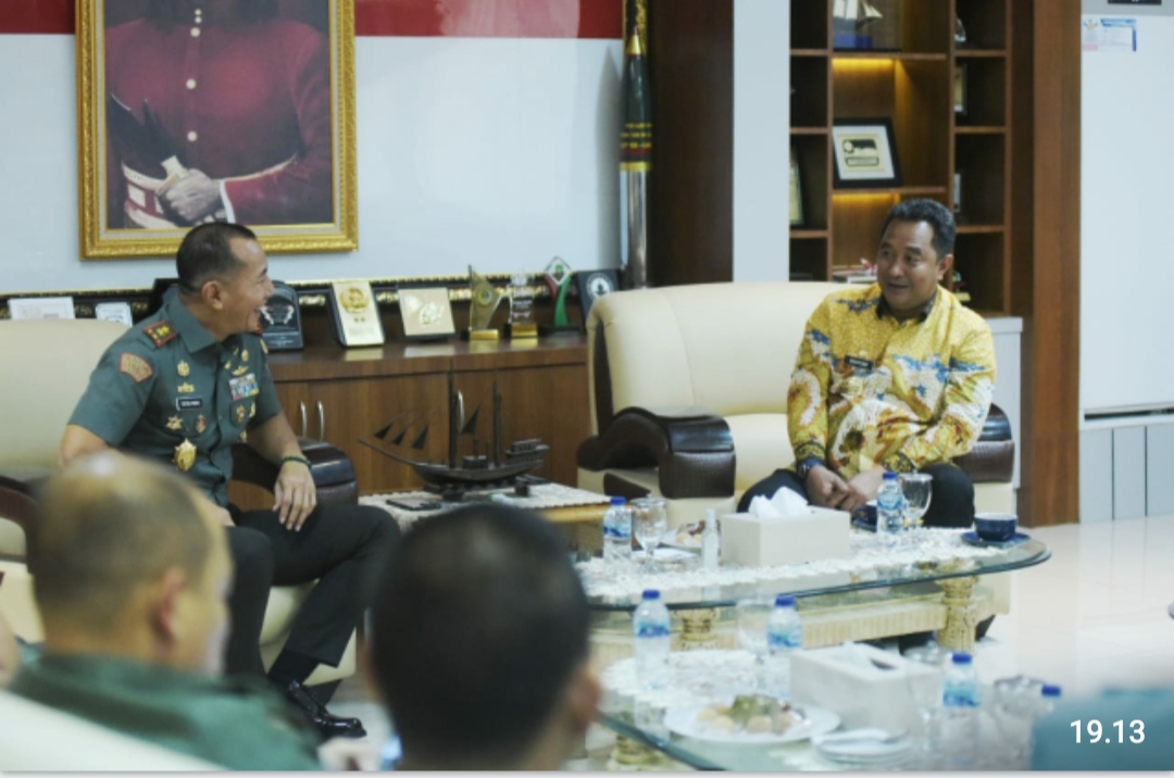 Makassar -klivetvindonesia.com- Pererat hubungan sinergi dan kerjasama, Pangdam XIV/Hasanuddin Mayjen TNI Dr. Totok Imam Santoso, S.I.P., S.Sos., M.Tr (Han)., menerima kunjungan silaturahmi Pejabat (Pj) Gubernur Sulsel Dr. Bahtiar Baharuddin, M.Si., bertempat di Ruang Tamu Pangdam Makodam, Kota Makassar. Kamis (7/09/2023).