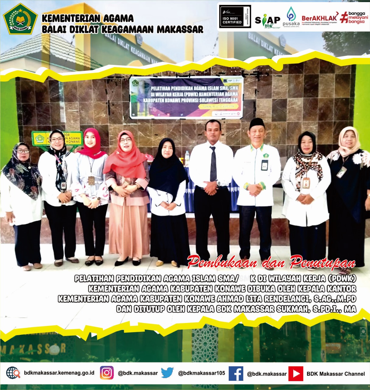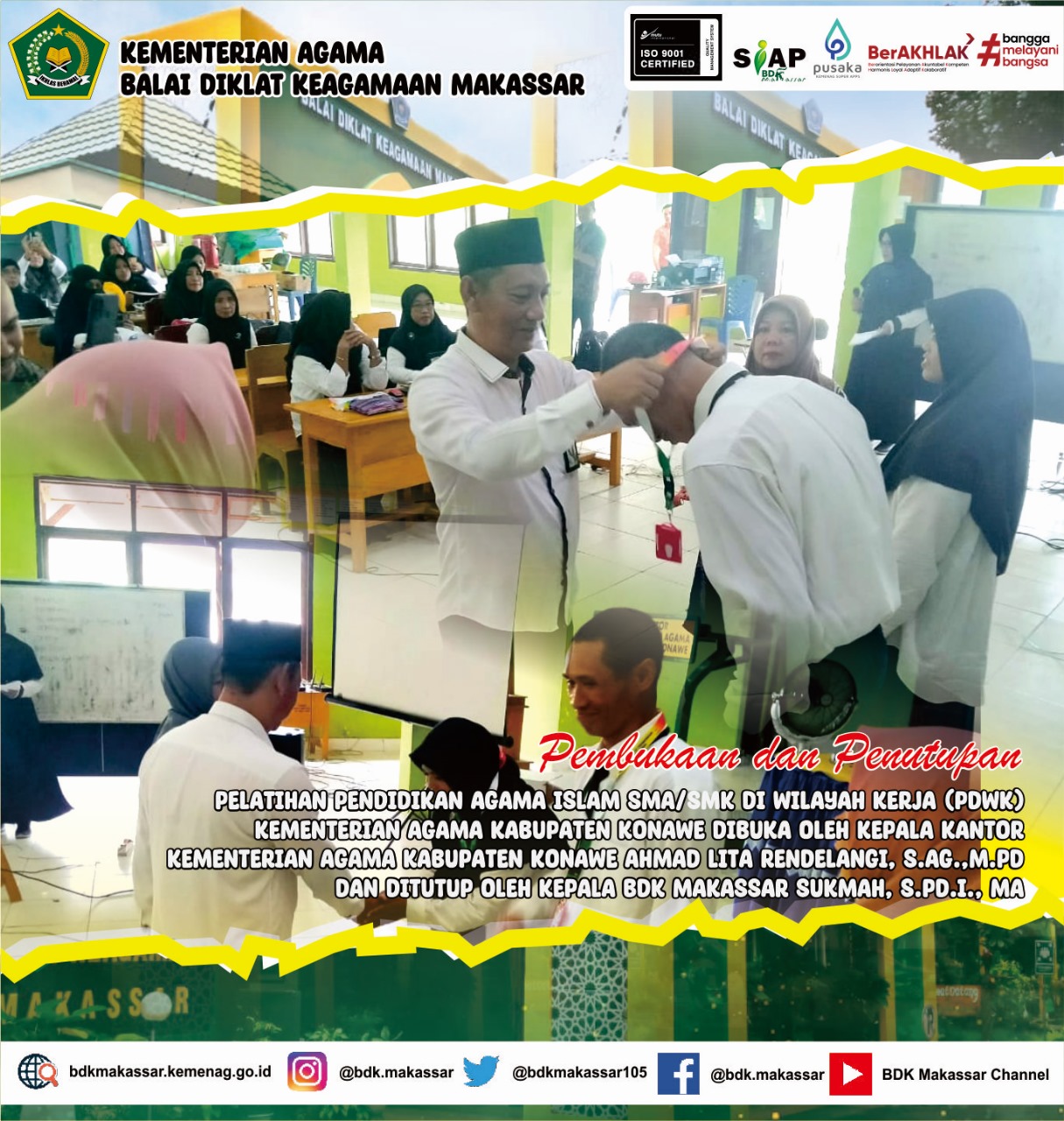 Sementara itu pada Penutupan Pelatihan ini, Plt. Kepala BDK Makassar Sukmah, S.Pd.I., MA. Mengharapkan para peserta yg telah mengikuti kegiatan dapat mengimplementasikan ilmu yg d dapat kepada anak didik masing-masing . Pelatihan ini diselenggarakan dari tanggal 25 sampai 30 April 2024