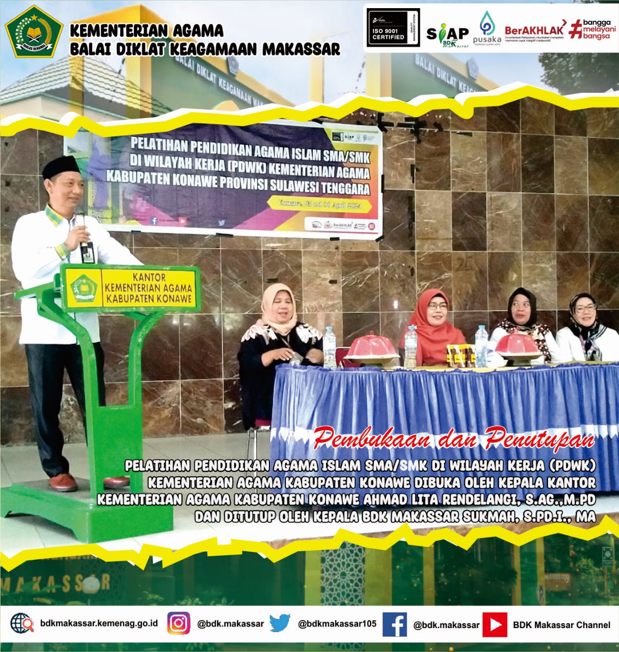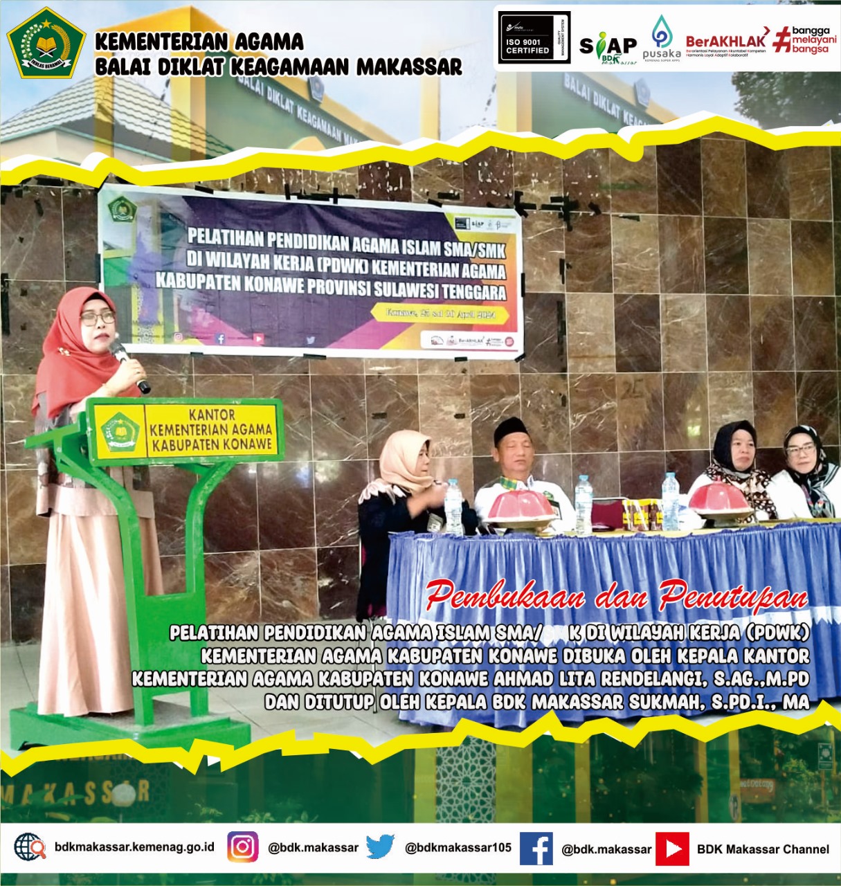 –klivetvindonesia.com– Balai Diklat Keagamaan Makassar melaksanakan Pelatihan Di Wilayah Kerja (PDWK). Kali ini PDWK yang diselenggarakan di Kabupaten Konawe Provinsi Sulawesi Tenggara .30/04/2024