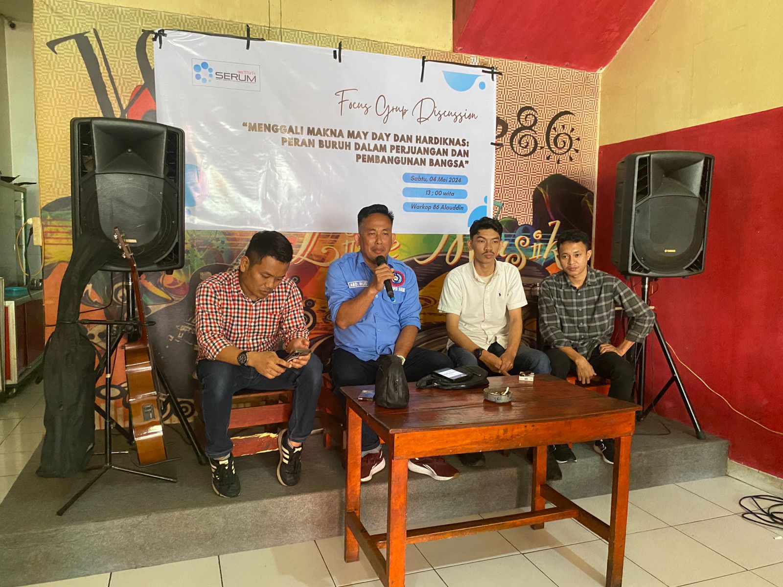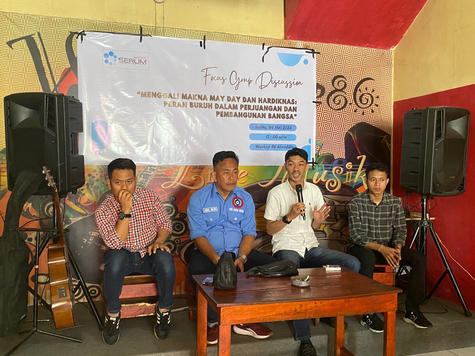 Kali ini, SERUM mengangkat isu “Menggali Makna May Day dan Perjuangan Hardiknas: Peran Buruh Dalam Perjuangan dan Pembangunan Bangsa” yang berlangsung di Warkop 86 Alauddin, Jl Sultan Alauddin.