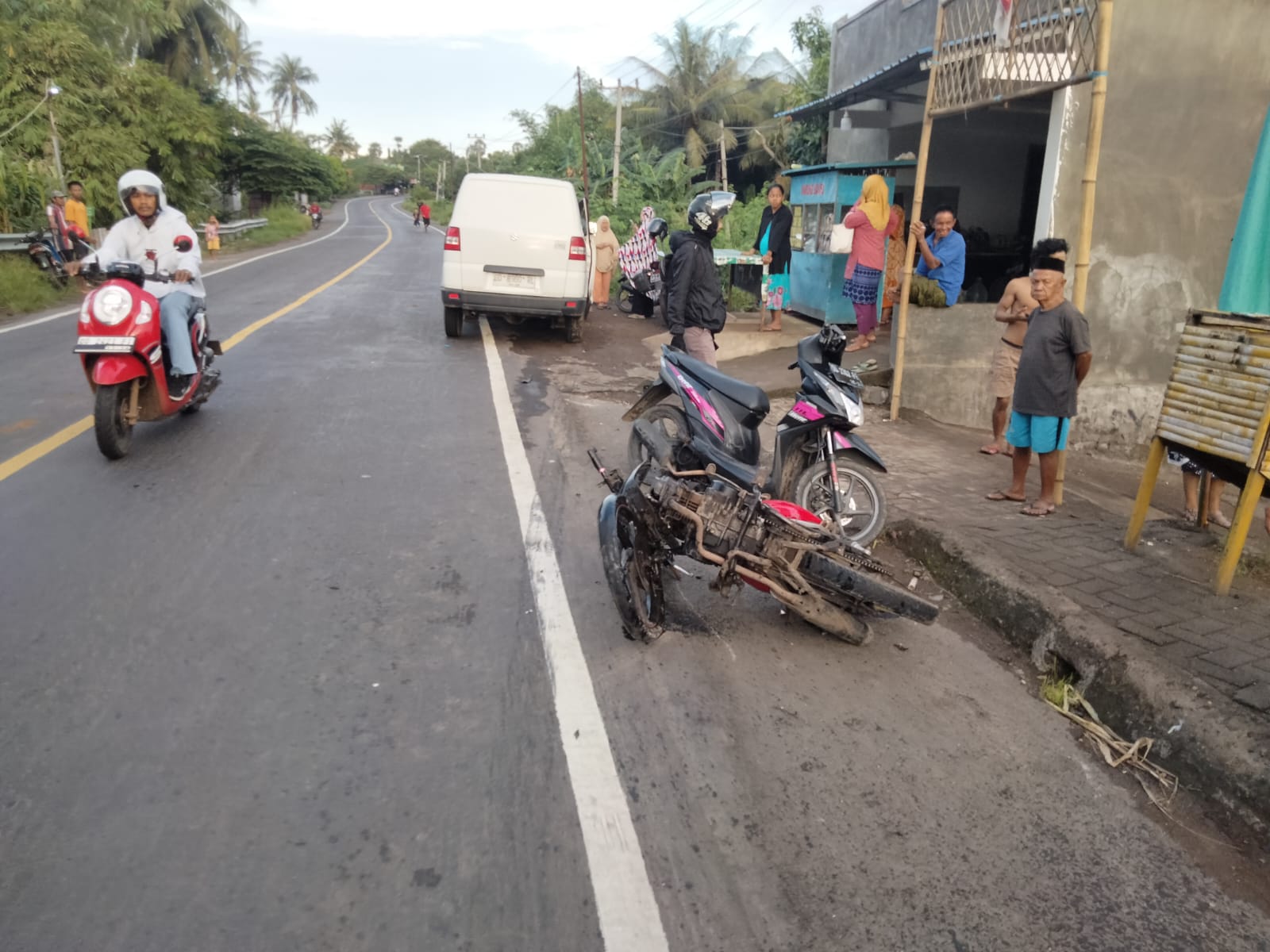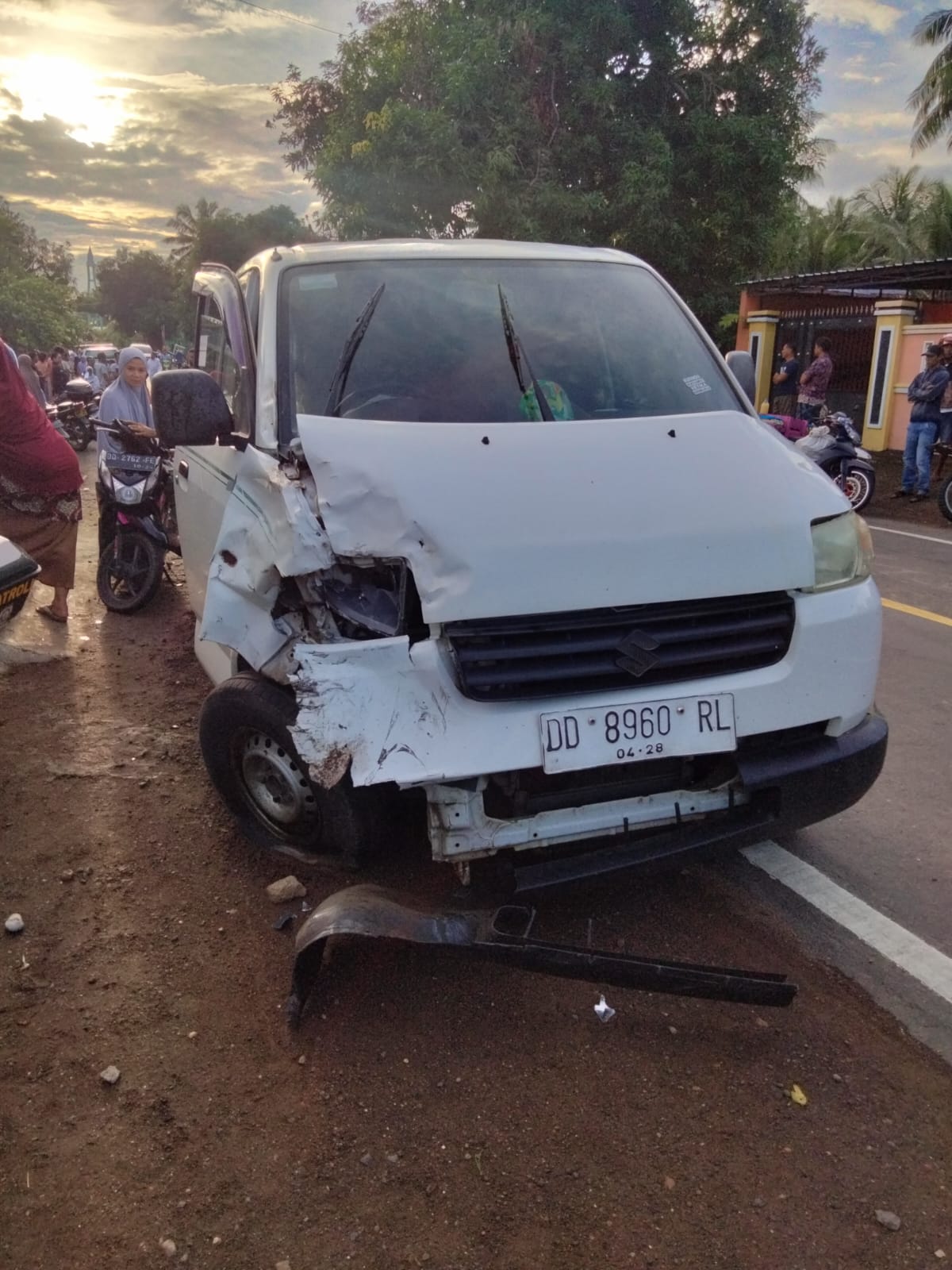 Kecelakaan lalulintas tersebut melibatkan sebuah mobil Suzuki APV DD 8960 RL yang dikemudikan oleh Lel. R (31) dengan sepeda motor tanpa plat nomor yang dikendarai oleh Lel. H (40) berboncengan dengan Perm. S (18) setibanya di tempat kejadian perkara mobil Suzuki APV yang bergerak dari arah Bantaeng berusaha melambung sebuah mobil tanpa memperhatikan kendaraan yang bergerak dari arah berlawanan sehingga menabrak sepeda motor yang tidak ada lampunya.