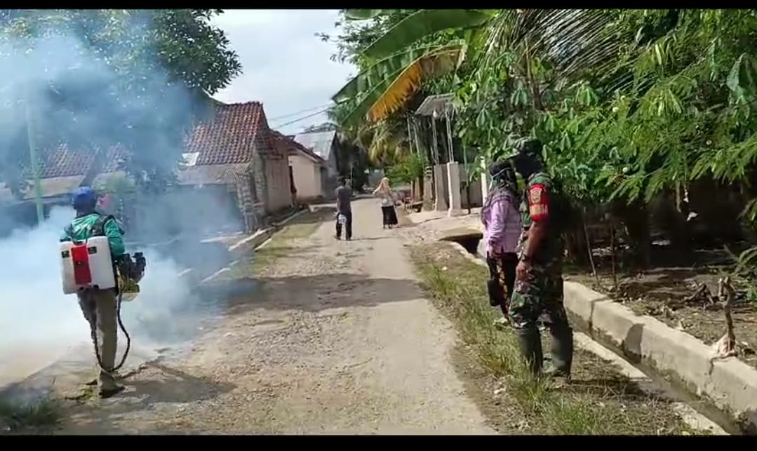 Klivetvindonesia,com. Pesawaran- Koramil 421-01/KDD Babinsa Desa Tanjung Rejo kopda Saptono tri putranto melaksanakan pendampingan kegiatan Fogging dari dinas kesehatan di Desa Tanjung Rejo Kecamatan Way Khilau Kabupaten Pesawaran. Rabu (08/05/24).