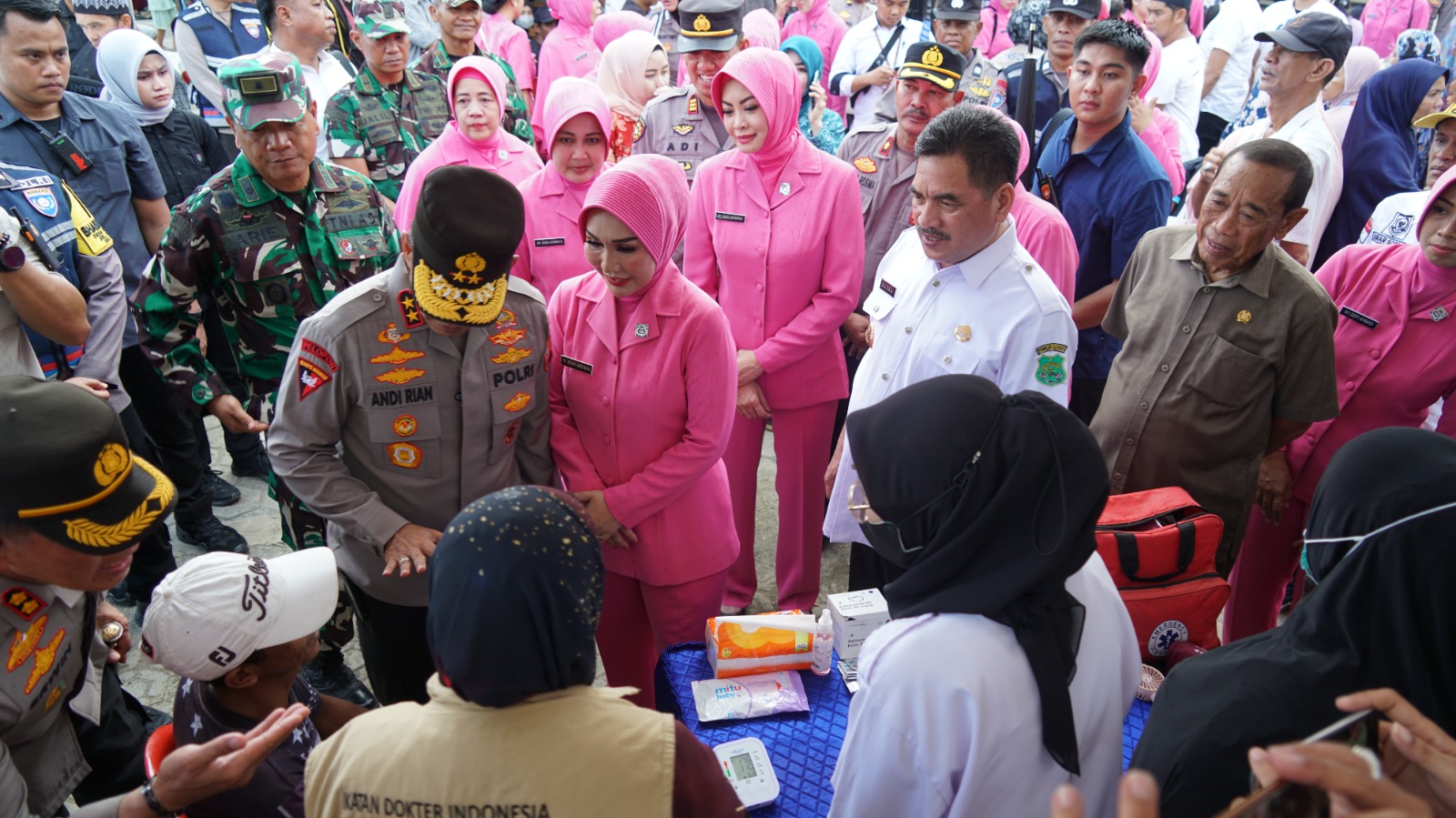 Tampak pula Wakil Ketua Bhayangkari Daerah Sulsel, Susi Ch. Patoppoi, Ketua Bhayangkari Cabang Sidrap, Siska Erwin Syah, Pj. Ketua TP PKK Sidrap, Hafni Basra, dan Pj Ketua Dharma Wanita Persatuan (DWP) Sidrap, Eka Trisnawati.