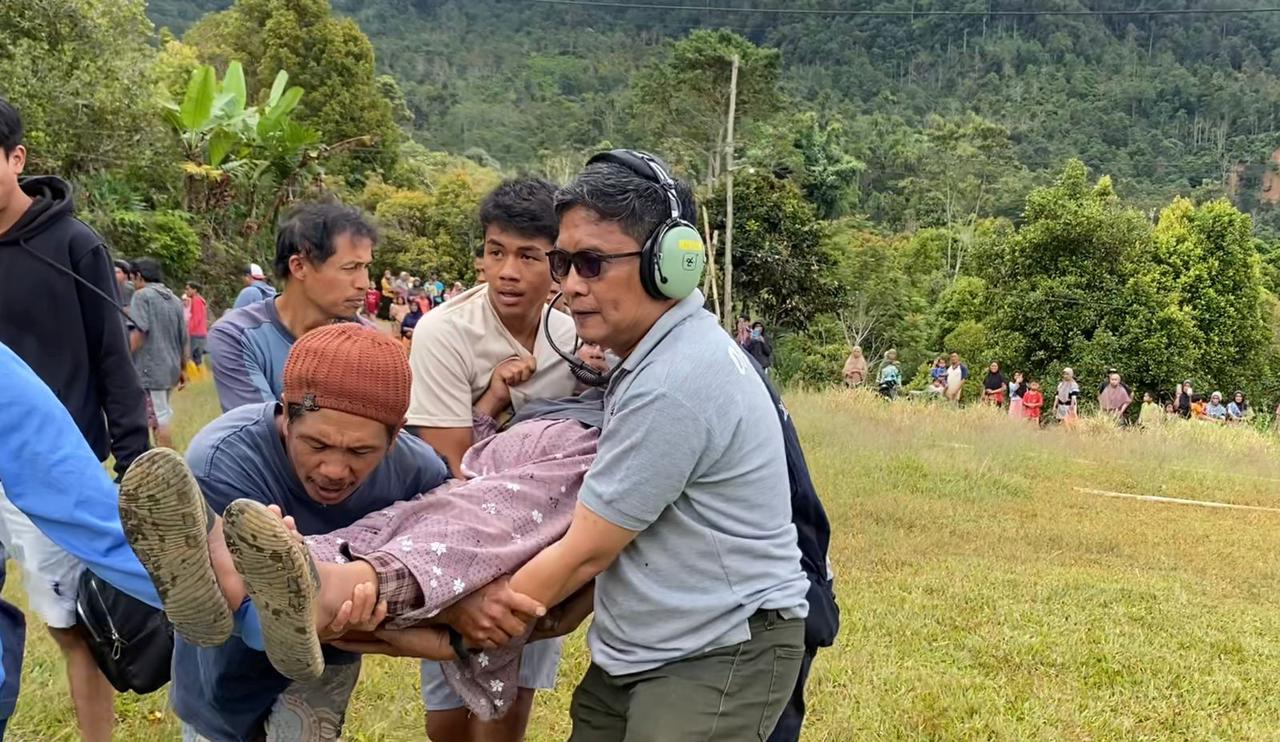 Saat helikopter tiba untuk menjemput warga sudah ramai menanti agar ibu muda yang sedang hamil tersebut segera dievakuasi karena sudah 2 hari dalam kondisi kesehatan yang mengkhawatirkan keluarganya.