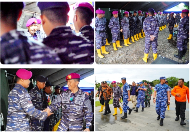 Di sela-sela Kunjungan ke daerah Bencana Alam mendampingi PJ Gubernur Sulsel Dr. Bahtiar Baharuddin, Komandan Lantamal VI menemui dan memberikan pengarahan serta motivasi kepada personil Satgas kemanusiaan Penanggulangan bencana alam. “Satgas kemanusiaan sama penting nya dengan satgas-satgas lainnya, sebagai prajurit Marinir kita harus siap kapanpun, dan dimanapun, tinggalkan keluarga, tinggalkan anak istri, percayalah keringat kita pasti dibuahi dengan penuh berkah. Membantu warga yang terkena musibah bukanlah hal yang mudah tentunya kita harus siapkan tenaga, fisik, jaga kondisi, dan pastinya doa agar bencana ini cepat selesai dan warga Luwu bisa kembali normal dan beraktifitas seperti sedia kala“.