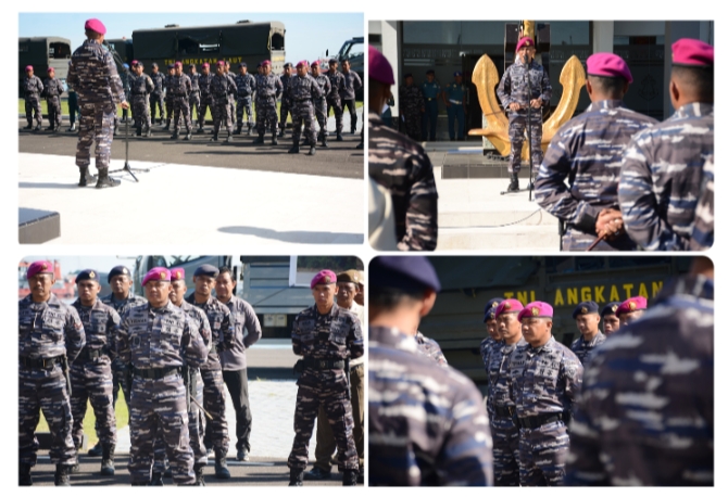 Di tempat yang sama Komandan Batalyon Marinir Pertahanan Pangkalan (Danyonmarhanlan) VI Mayor Marinir Yusman Efendi,M.Tr.Opsla selaku Dansatgas Gulben Lantamal VI menyampaikan, ”Hormat bangga telah membawa panji Marinir, hormat dan banyak terimakasih kepada tim satgas atas dedikasi, loyalitas,dan kerja keras yang dilakukan personil Satgas.