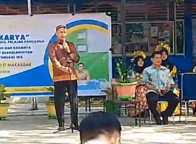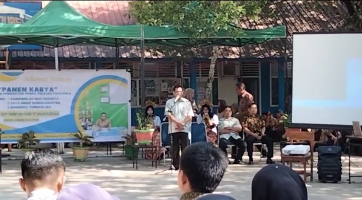 Kepala sekolah UPT SPF SMP Negeri 17 Makassar Sukardi, S.Pd. saat membuka acara gelar karya ini dalam sambutannya menyampaikan