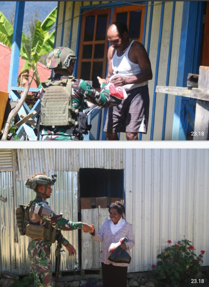 [ ILAGA ] -KLIVETVINDONESIA.COM- Satgas mobile Yonif 323/Buaya Putih Pos Kosatgas Ilaga kembali melaksanakan kegiatan bersama masyarakat dengan memberikan bantuan sembako dan pakaian layak pakai di Kampung Kago Distrik Ilaga Kab. Puncak, Senin (03/05/2024).