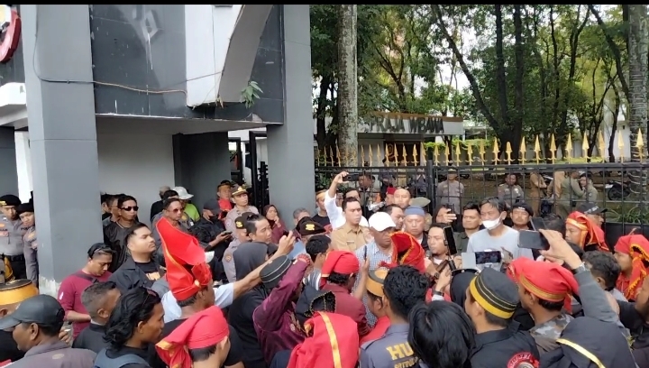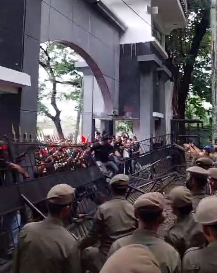 Sehubungan dengan permintahan dialog mereka mengalami buntut karena pintu pagar kantor gubernur Sulawesi selatan ditutup dan tidak diijin oleh Polisi Pamong Praja maka terjadi aksi dorong mendorong pintu kantor gubernur tersebut antara masa dengan Pol PP . dan terlihat seru karena Polisi Pamong Praja mempertahankan agar masa jangan merangsek masuk kehalaman kantor gubernur maka Polisi tersebut pasang kuda – kuda untuk menahan pagar pintu tersebut agar tidak rubuh dari dorongan masa tapi karena kuatnya dorongan maka Pintu Kantor Gubernur Sulawesi selatan , Rubuh dan terlihat suasana mulai tidak tertib .