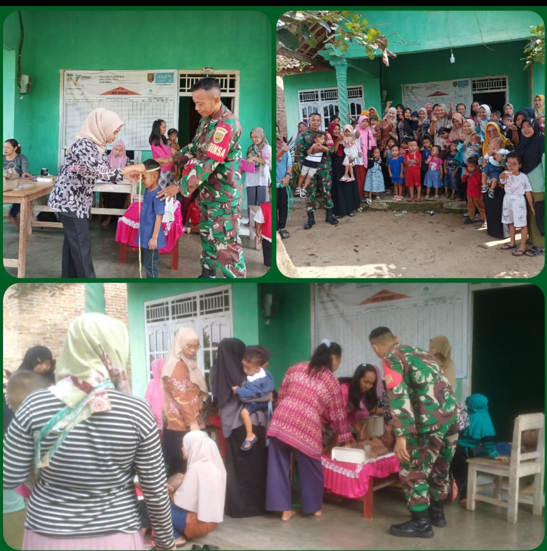 Klivetvindonesia,com. Pesawaran- Bintara Pembina Desa Poncikresno (Babinsa) Koramil 421-02/Gedong Tataan Kodim 0421/Lampung Selatan melaksanakan kegiatan pendampingan Pelayanan Posyandu di Desa Poncokresno dusun Wonosari 1, Kecamatan Negeri Katon, Jumat (08/06/2024).