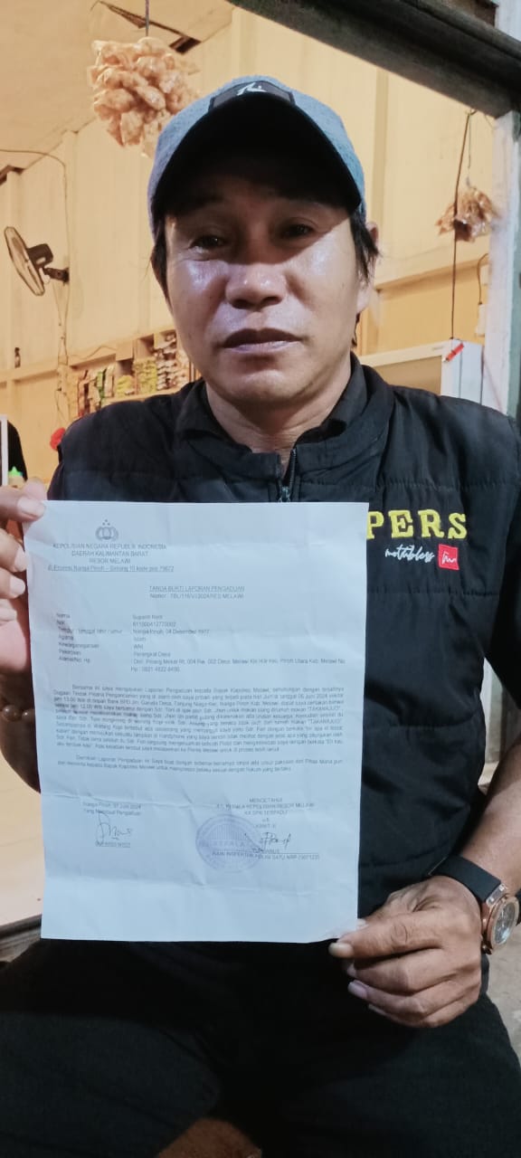 “Merasa jiwanya terancam Supardi Nyot mendatangi SPKT Polres Melawi guna membuat laporan Polisi jum’at malam pukul 20 Wib dan di terima…….dengan nomor LP: TBL/116/VI/2024/RES MELAWI, dirinya berharap kalau aparat penegak hukum Polres Melawi agar mengusut tuntas kepemilikan senjata yang di duga senpi milik saudara(FR) tersebut ujar Supardi Alias Nyot.