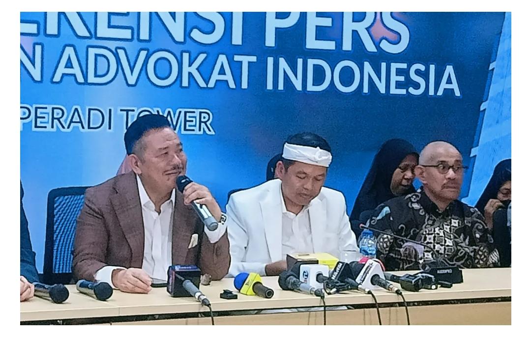 Klivetvindonesia.com Jakarta – Ketua Umum Dewan Pimpinan Nasional Perhimpunan Advokat Indonesia (DPN PERADI), Prof.Dr.Otto Hasibuan SH MM, selaku Ketum Dewan Pembina Nasional (DPN) Perhimpunan Advokat Indonesia (PERADI) menggelar konferensi pers terkait permohonan dari keluarga lima terpidana kasus Vina dan Eky yang ingin bertemu dengannya. Acara tersebut berlangsung sore hari ini Senin 10 Juni 2024.