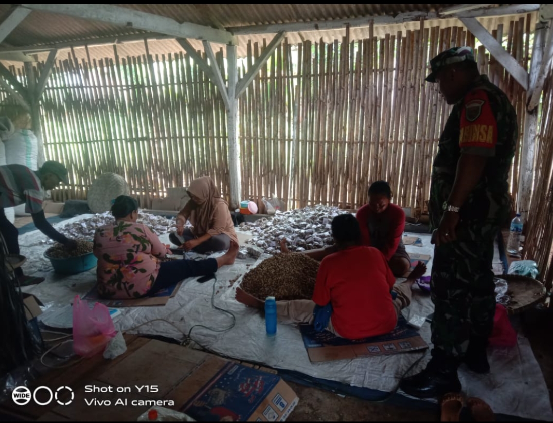 Dalam upaya mengoptimalkan usaha home industri yang berada di wilayah binannya guna memperoleh pendapatan perekonomian keluarga Serka Tomy tinjau langsung pengolahan kacang tanah yang nantinya akan digaringkan serta dikemas menjadi cemilan atau sebagai buah tangan para peminat konsumen.