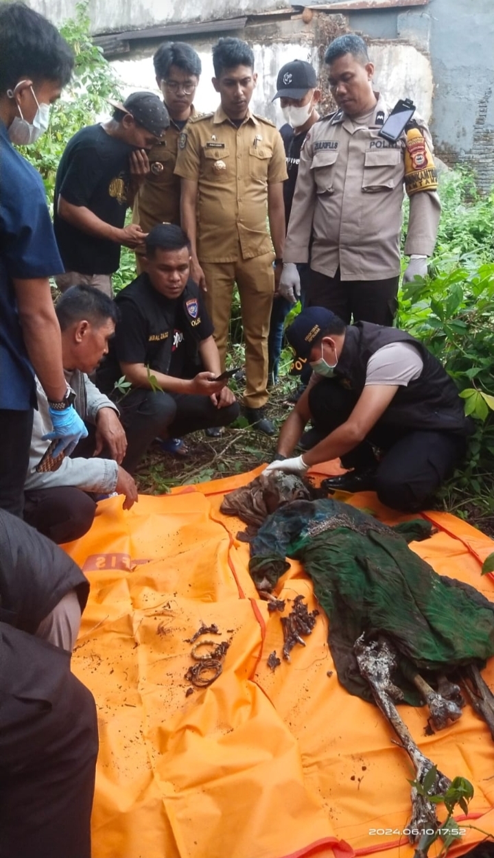 “Rampung Identifikasi dan olah TKP kerangka mayat tersebut dibawa ke RS. Bhayangkara untuk proses penyelidikan Lebih lanjut, dan terkait adanya warga yang mengakui keluarga dari temuan kerangka Manusia tersebut dilakukan pendataan serta mencocokkan ciri-ciri korban untuk dilakukan identifikasi”