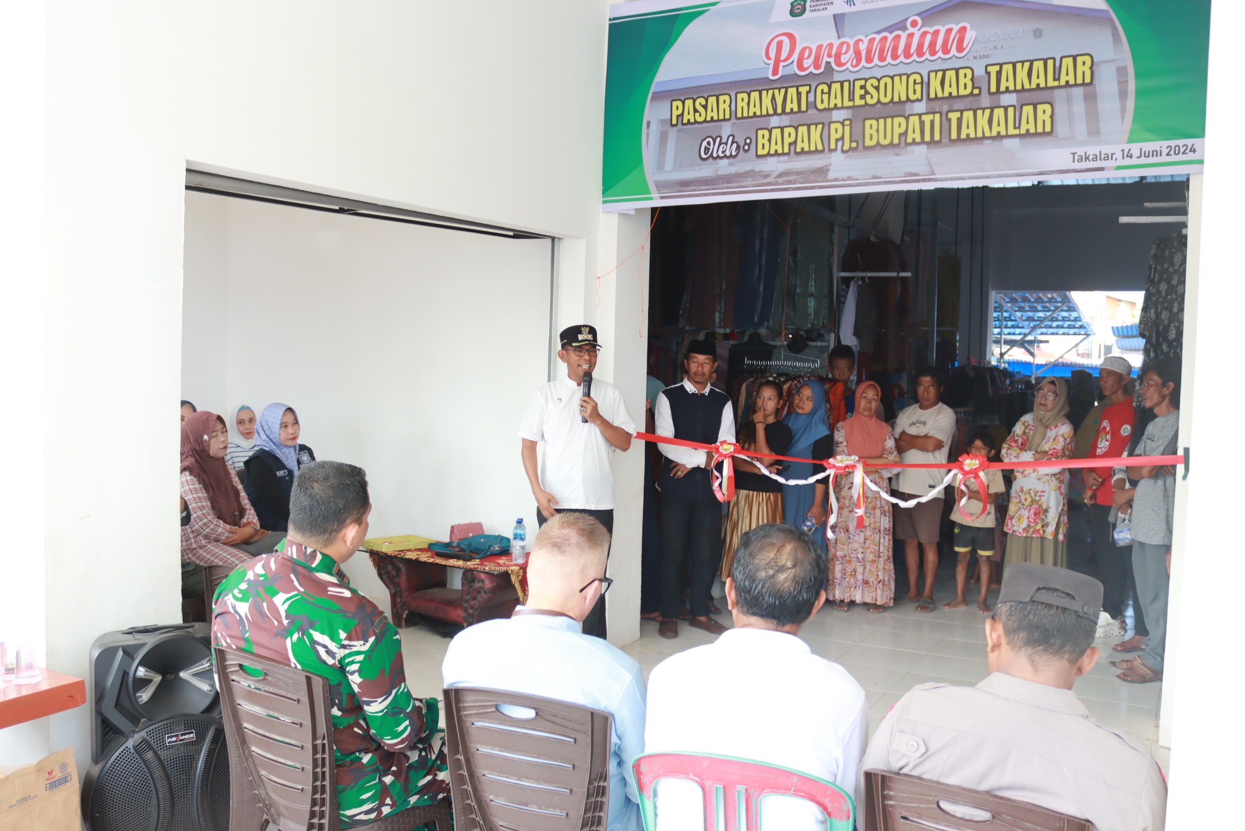 –klivetvindonesia.com– Pasar Galesong yang berlokasi di Desa Galesong Kab. Takalar diresmikan Jum’at (14/6/2024) oleh Pj. Bupati Takalar Dr. Setiawan Aswad,.M.Dev,.Plg. peresmian ditandai dengan pengguntingan pita yang disaksikan oleh Kepala BPS Kab. Takalar, perwakilan Forkopimda Takalar, Kadis Perdagangan Kab. Takalar, Kadis Perhubungan, Pj. Kadis Kominfo Takalar, Kepala Dinas Kesbangpol, Kepala Bapenda, Camat Galesong Tokoh Masyarakat dan disaksikan masyarakat setempat.