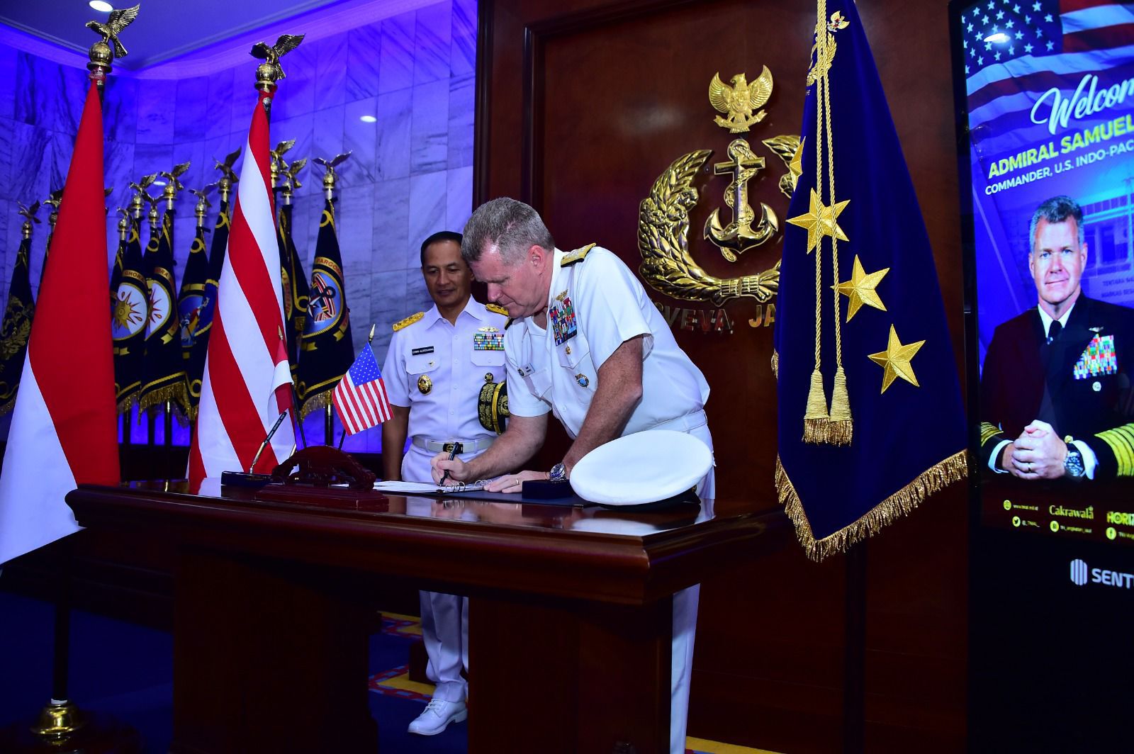 [ JAKARTA ] —KLTV INDONESIAklivetvindonesia.comWakil Kepala Staf Angkatan Laut (Wakasal) Laksamana Madya TNI Erwin S. Aldedharma mewakili Kepala Staf Angkatan Laut (Kasal) Laksamana TNI Dr. Muhammad Ali menerima kunjungan kehormatan Panglima Komando Indo-Pasifik Amerika Serikat atau US Indo-Pacific Command (INDOPACOM) Commander, Admiral Samuel J. Paparo di Ruang Admiral Markas Besar Angkatan Laut (Mabesal) Cilangkap, Jakarta Timur, Kamis (13/06/2024).