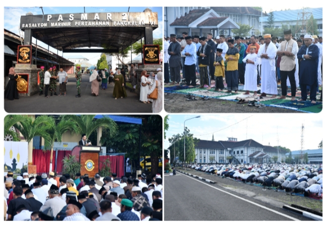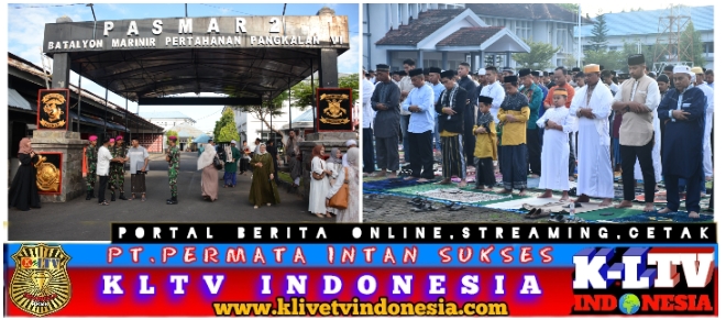 –klivetvindonesia.com– TNI AL. Dispen Kormar (Makassar). Prajurit petarung Yonmarhanlan VI merayakan sholat Idul Adha bersama warga sekitar Lantamal VI yang memadati pelataran masjid Jamiatul Bahari Mako Lantamal VI untuk melaksanakan sholat Idul Adha tahun 1445H/2024 M secara berjamaah. Senin (17/06/2024)