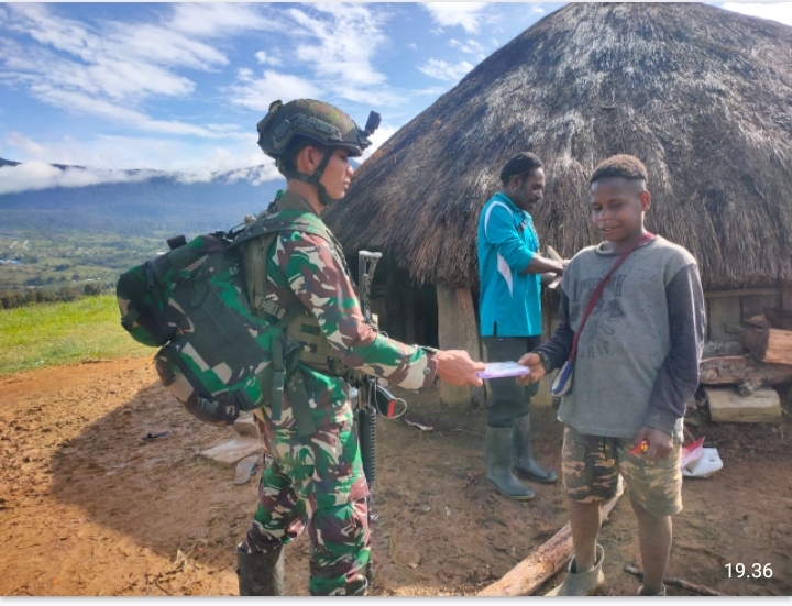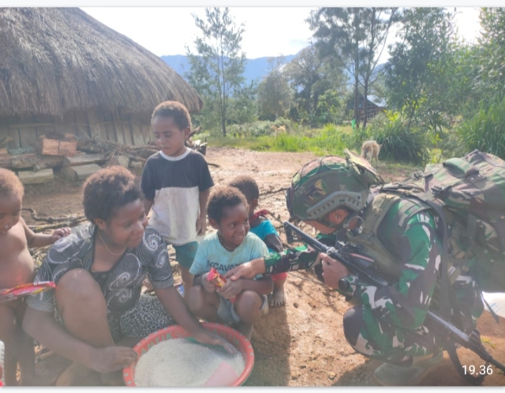 [ GOME ] -KLTV INDONESIA.COM- Buktikan Kedekatan TNI dengan masyarakat, Pos Gome Satgas Mobile Yonif 323/Buaya Putih melaksanakan komunikasi sosial dengan masyarakat sekitar kampung Jenggernok Distrik Gome Kab. Puncak, Senin (17/06/2024).