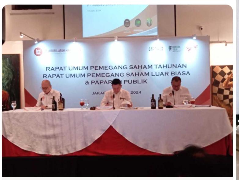 Klivetvindonesia.com Jakarta – 19 Juni 2024 – Penyelenggaraan Rapat Umum Pemegang Saham Tahunan dan Luar Biasa (RUPST & LB) tahun buku 2023 PT Jobubu Jarum Minahasa Tbk dengan kode saham “BEER” berjalan dengan baik.