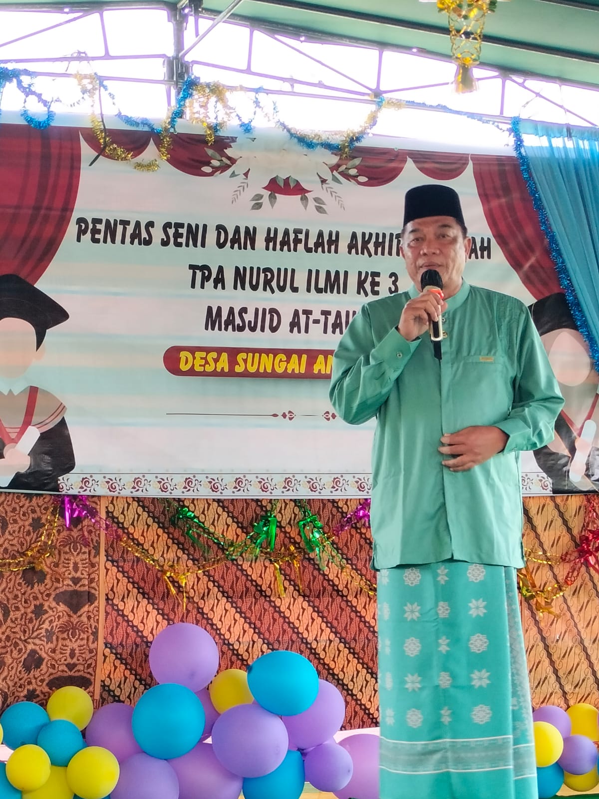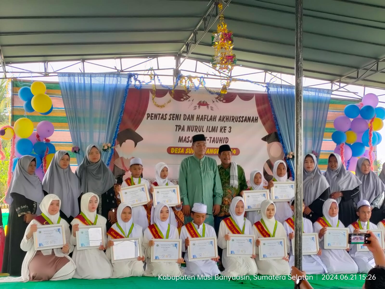 Bakal calon Bupati Muba H.M.Toha Tohet.SH hari ini Jum’at 21 Juni 2024 menghadiri acara Pentas Seni dan Haplah akhirirussana TPA Nurul Ilmi Ke 3 Masjid At- Tauhid Desa Sungai Angit Kecamatan Babat Toman Muba sumatera selatan. H.Toha dalam sambutannya menyampaikan Alhamdulillah syukur bisa selalu hadir di tengah – tengah masyarakat dan aspirasi yang sedalam-dalamnya tuk ketua TPA Nurul Ilmi yaitu ustadzah Umi Latifa dan kepada seluruh ustadz – ustadzah yang telah membawa TPA Nurul Ilmi semakin hari semakin berkembang ini terbukti bahwa hari ini sudah Haplah yang ke tiga semoga kedepannya TPA Nurul Ilmi akan lebih baik dan maju. Dan beliau akan selalu mensupport kegiatan – kegiatan di TPA ini. Dan hal ini bukan hanya karena saya akan mencalonkan bupati saja ujarnya. beliau H.Toha Tohet SH selaku Donatur tetap TPA Nurul Ilmi dan juga masjid at-tauhid Desa Sungai Angit ,juga menyampaikan bahwa beliau akan mencalonkan diri sebagai Bupati atau wakil Bupati Muba mohon doa dan dukungan dari masyarakat, yang langsung di aamiin kan dan tepuk tangan dari hadirin para undangan . menandakan masyarakat mendukung niat baik Yung Toha.