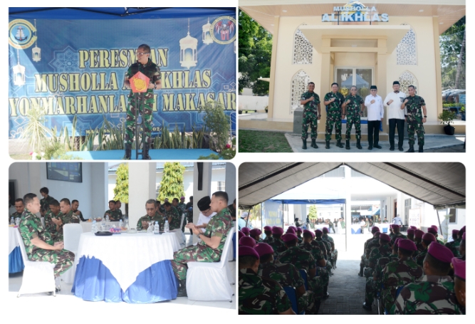 –klivetvindonesia.com– TNI AL Dispen Kormar (Makassar). Dalam rangka meningkatkan keimanan dan ketaqwaan prajurit dan setelah proses renovasi Musholla Al-Ikhlas, Danlantamal meresmikan Musholla Al-Ikhlas Yonmarhanlan VI yang terletak di Jalan Yos Sudarso No.308, Ujung Tanah Kota Makassar. Jumat (21/06/2024).