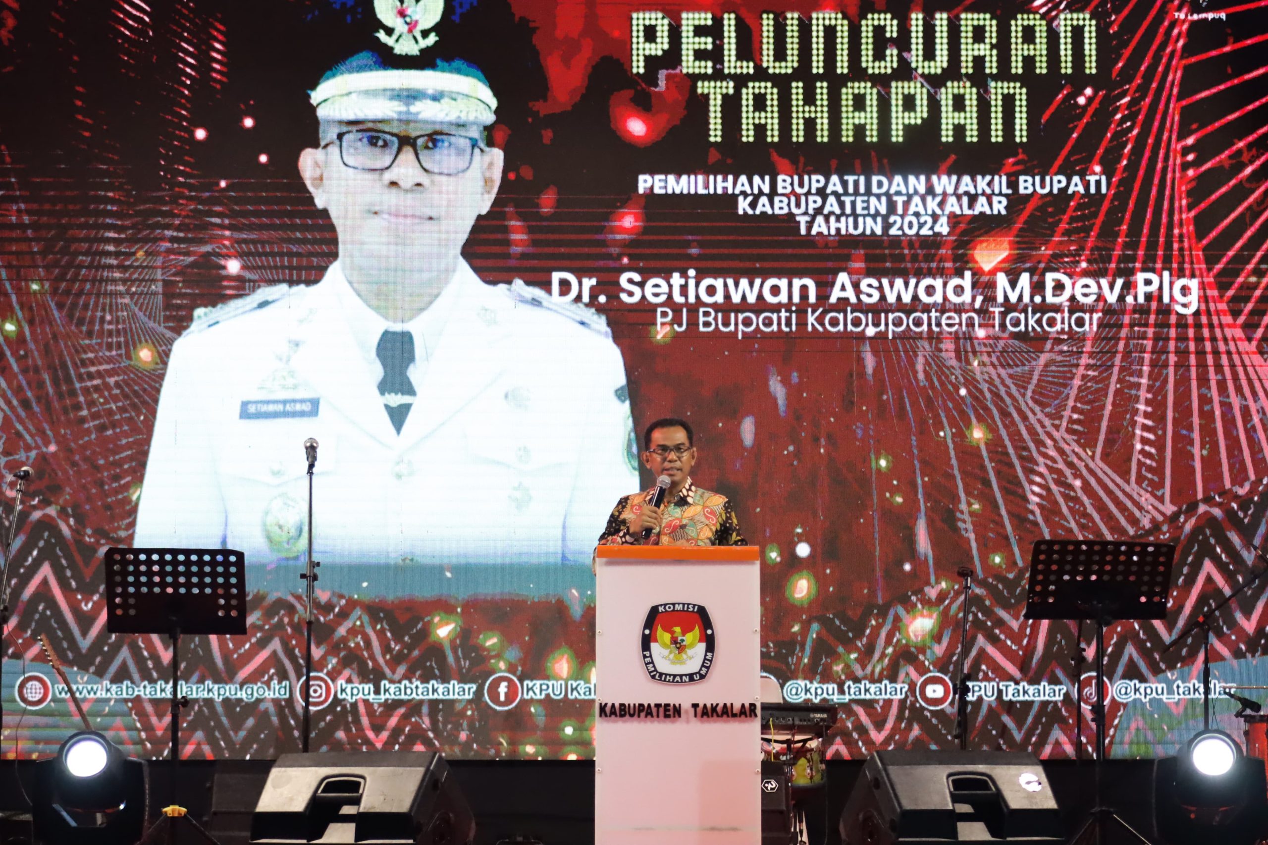 –klivetvindonesia.com– Pj Bupati Takalar Dr. Setiawan Aswad, M.Dev.,Plg, Hadir di peluncuran tahapan Pemilihan Bupati dan Wakil Bupati Kabupaten Takalar Tahun 2024 di Lapangan H. Makkatang Dg Sibali Takalar 21 Juni 2024 (Malam)