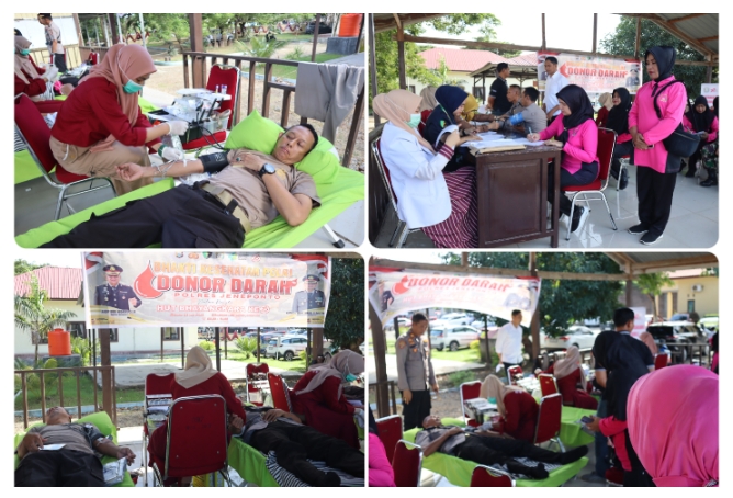 –klivetvindonesia.com— Polres Jeneponto bersama Bhayangkari menggelar kegiatan donor darah sebagai bagian dari peringatan Hari Ulang Tahun (HUT) Bhayangkara ke-78, Senin (24/6/2024).