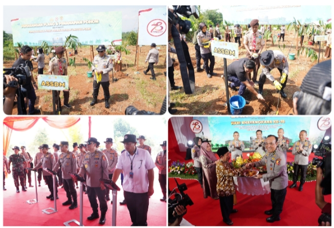 Sebagai wujud kepedulian terhadap lingkungan, kegiatan dilanjutkan dengan penanaman pohon di Lokasi lahan Pusat Pembinaan SDM Unggul Polri.
