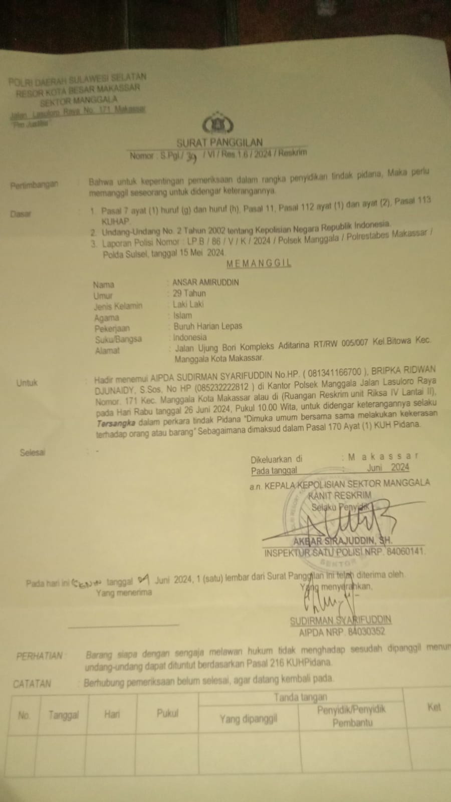 Namu upaya tersebut sama sekali tidak di respon oleh Manggala, hingga berita ini di terbitkan kapolsek manggala belum memberikan klarifikasi terkait hal tersebut ada apa..?