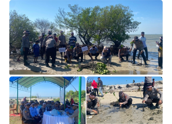 –klivetvindonesia.com– – Dalam rangka memperingati HUT Bhayangkara ke-78, Polres Jeneponto bersama Pemerintah Daerah Jeneponto dalam hal ini Pemerintah Desa Bungeng Kecamatan Batang Kabupaten Jeneponto menggelar kegiatan bakti sosial penanaman pohon di pesisir pantai, pada Kamis, 27 Juni 2024.