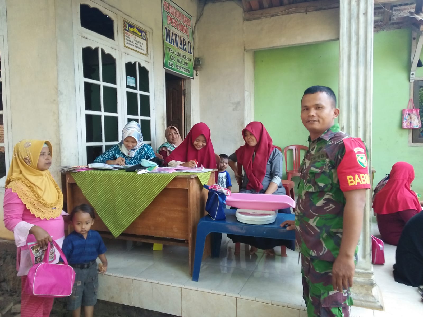 Guna memberikan rasa aman dan tertib nya kegiatan Posyandu Sertu Baginda Siregar Babinsa Koramil 421-01/Kedondong turut berperan mendampingi sebagai bentuk kepedulian kesehatan di wilayah binaan Desa Gunung Rejo, Kecamatan Way Lima, Kabupaten Pesawaran, Sabtu (29/6/2024).
