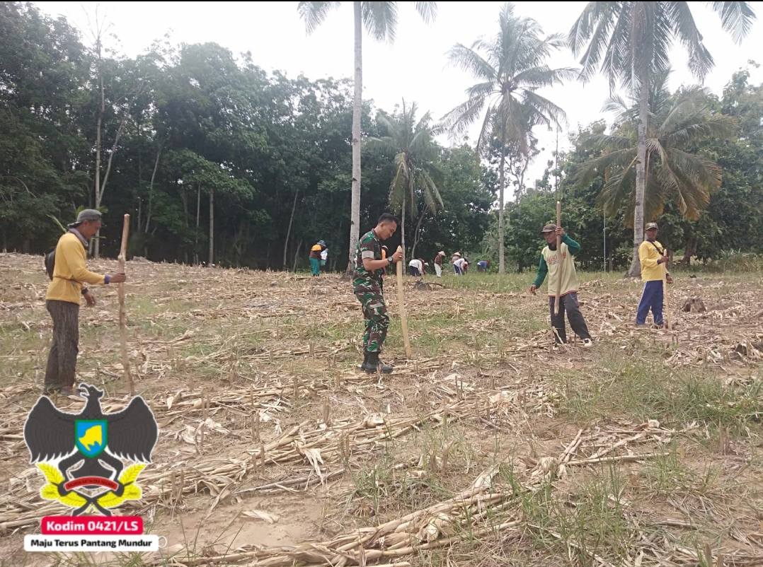 Seperti yang dilakukan oleh Babinsa desa Pujodadi, anggota Koramil 421-02/Gdt, Serda Febri melakukan pendampingan kepada petani dengan membantu menamam jagung di lahan seluar 1 hektar milik Bapak Prio, warga Desa Pujodadi Dusun Siti Rahayu, Kecamatan Negeri Katon, Kabupaten Pesawaran, Sabtu, (06/07/2024).