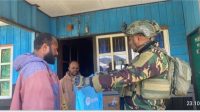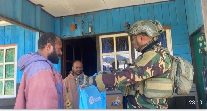 inisiatif Satgas Yonif 509 Kostrad dalam membagikan Sembako di Kampung Puyagiya.