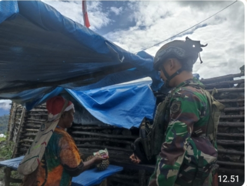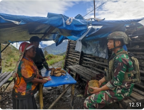 [ PAPUA TENGAH ] -Klivetvindonesia.com- Kegiatan borong hasil tani (ROSITA) Pos Pintu Jawa Satgas Mobil Yonif 323/BP Kostrad Pimpinan Lettu Inf Arif Caroko kembali membawa kebahagiaan, dengan memborong Hasil Tank Mama Asli Papua, Distrik Sinak, Puncak, Papua Tengah, Kamis (18/07/2024)