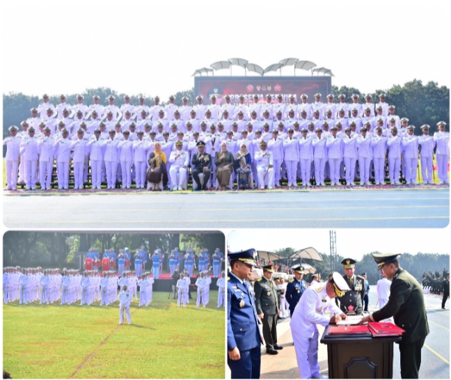Setelah tujuh bulan menempuh Pendidikan Pertama (Dikma) di Magelang, sebanyak 350 Perwira Prajurit Karier TNI TA 2024 yang terdiri dari 141 personel Matra Darat (Pria 127 dan Wanita 14), 108 personel Matra Laut (Pria 89 dan Wanita 19) serta 101 personel Matra Udara (Pria 94 dan Wanita 7) resmi dilantik dan diambil sumpah oleh Panglima TNI.