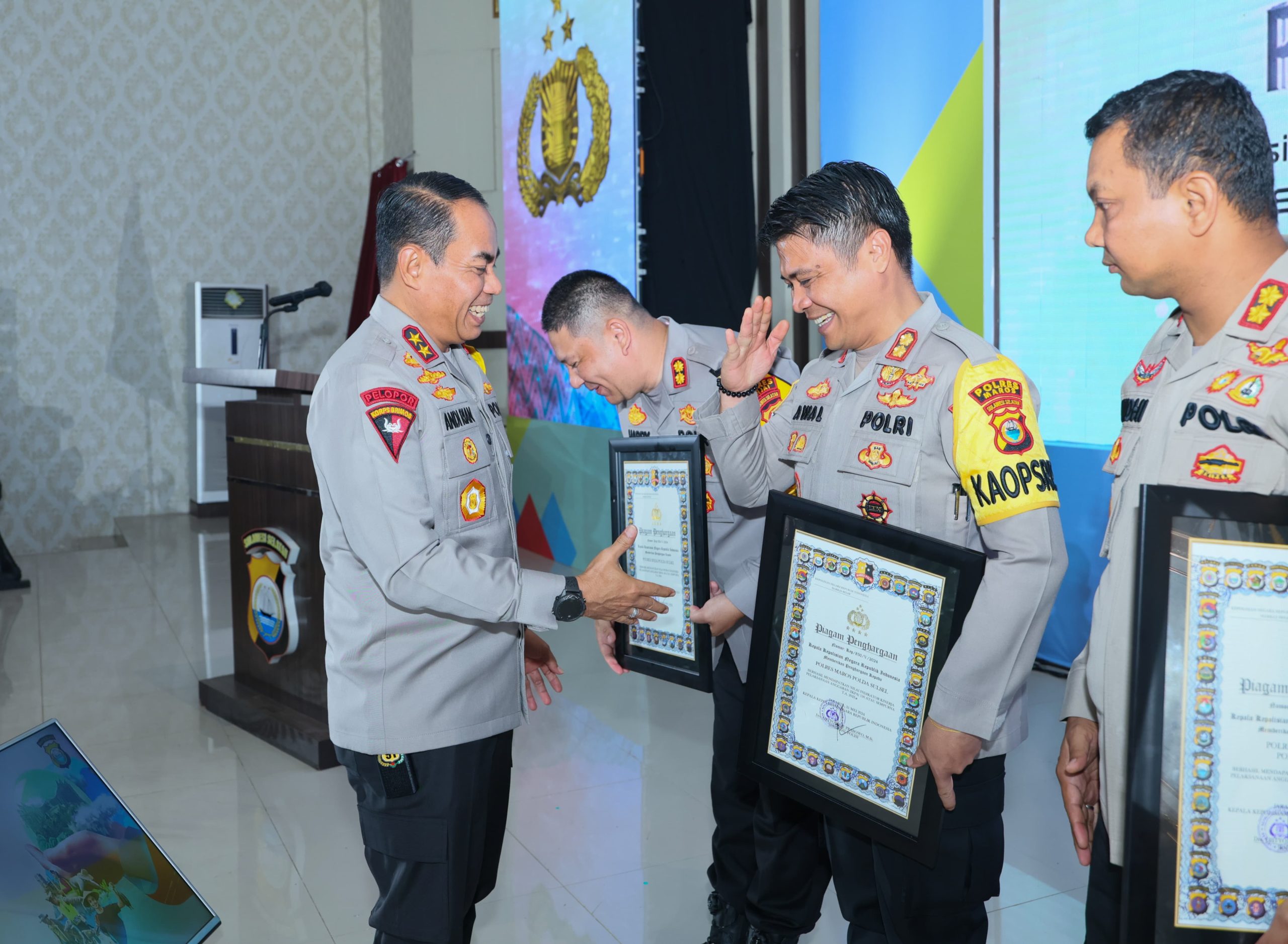Penghargaan ini diberikan langsung oleh Kapolda Sulsel IRJEN. POL. Andi Rian R. Djajadi. S.I.K.,MH atas upaya luar biasa Polres Jeneponto dalam konsistensi dalam menerapkan prinsip-prinsip transparansi dan akuntabilitas.