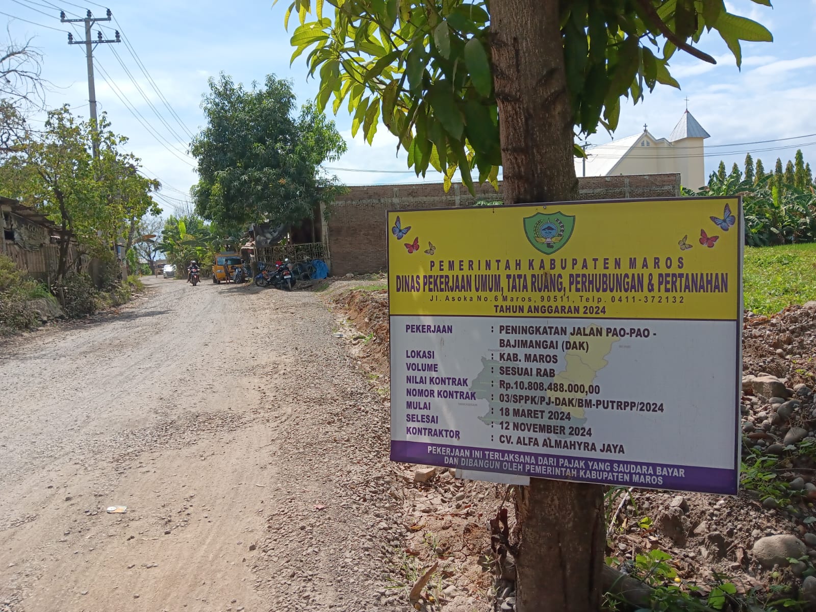 Diketahui proyek tersebut dikerjakan oleh pihak kontraktor CV Alfa Almahyra JAYA dengan kesepakatan estimasi pengerjaan 9 bulan, yang mulai dikerjakan 18 maret 2024 dan akan selesai dirampungkan 12 november 2024.