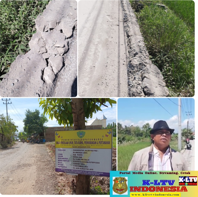 MAROS KLTV INDONESIA ––klivetvindonesia.com– Pengerjaan peningkatan Jalan Pao Pao Bajimangai melalui (Dak) di Kab Maros letaknya samping Bandara baru tembus Sudiang mendapat sorotan keras dari LKIN Lembaga kontrol independent indonesia Karna di duga ada Yang Tidak Betes.2/8/2024