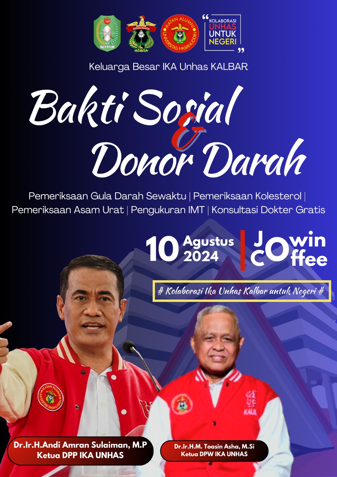 Acara Bhakti Sosial dan donor darah ini merupakan perwujukan perhatian Pengurus dan Keluarga Besar IKA Unhas Kalbar akan kekurangan stok darah segar di Kalimantan Barat, dengan mengajak seluruh Pengurus dan keluarga besar IKA Unhas untuk membantu sesama terhadap saudaranya yang di butuhkan lanjut dr Joni.