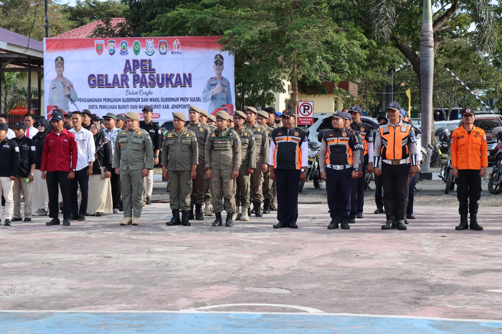 Apel gelar pasukan ini melibatkan personil TNI Polri yang terdiri dari personil Kodim 1425, Polres Jeneponto. Apel ini juga melibatkan unsur Pemerintah Kabupaten Jeneponto, antara lain Sat Pol PP, Dishub, Damkar, BPBD, Dinas Kesehatan, dan Senkom, serta penyelenggara Pemilu KPU dan Bawaslu Jeneponto yang juga melibatkan stafnya mengikuti acara tersebut.