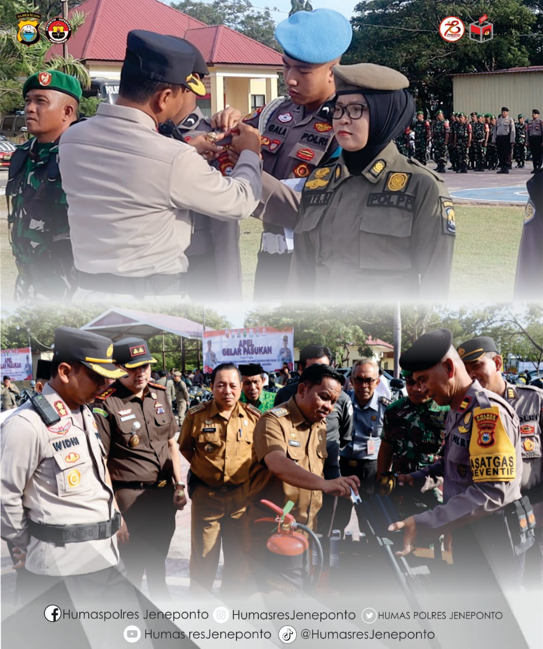 Rangkaian Pemeriksaan Pasukan dan penyematan pita operasi kepada perwakilan pelaksana operasi menjadi penanda kesiapan Polres Jeneponto bersama seluruh pihak terkait dan elemen yang terlibat, untuk mengamankan jalannya pesta demokrasi Pemilukada 2024 di Kabupaten Jeneponto.