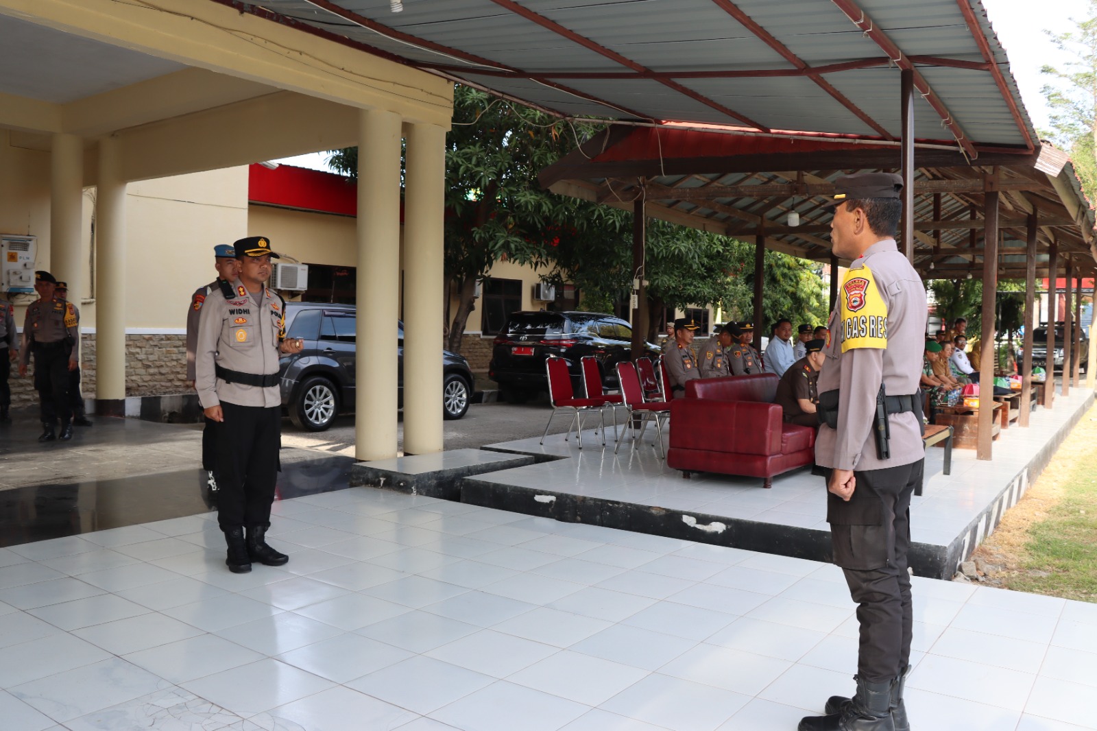 Kapolres Jeneponto AKBP. Widi Setiawan, S.I.K, M.I.K., bertindak selaku Pimpinan Apel, sementara yang bertindak selaku komandan Apel adalah Ipda Samsul Bahri, S.H., KBO sat Intel Polres Jeneponto.