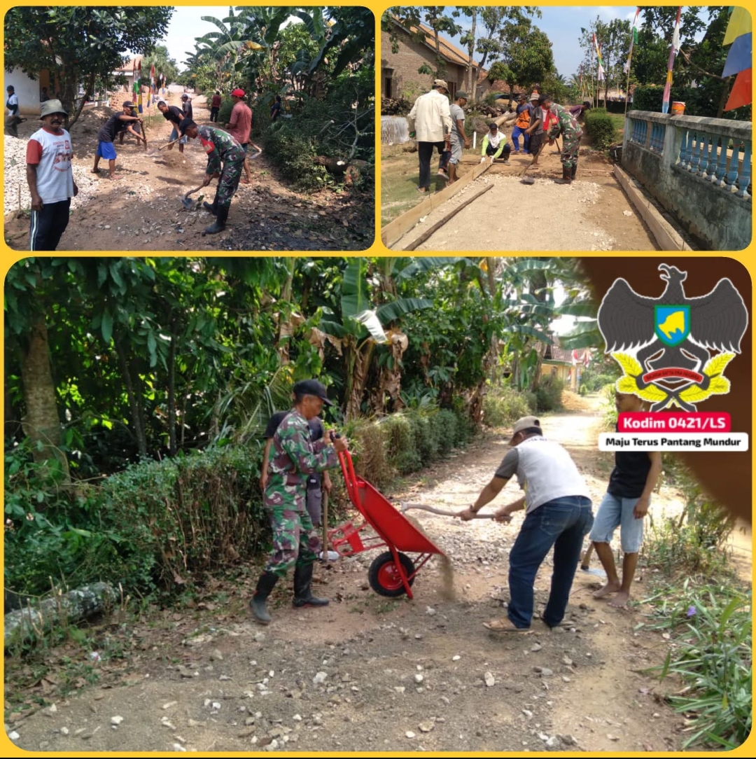 Danramil 421-02/Gdt Mayor Inf Sukandi mengatakan “Melalui gotong-royong yang dilakukan Babinsa bersama warga diharapkan benar-benar menyiapkan media jalan yang akan dirabat beton hal ini juga bermanfaat pula untuk terbinanya hubungan baik antara TNI dengan rakyat,” ujar Danramil.