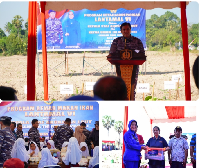 Kegiatan ketahanan pangan Lantamal VI dihadiri langsung oleh Kepala Staf TNI Angkatan Laut (KASAL) Laksamana TNI Dr. Muhammad Ali, S.E., M.M., M.Tr. Opsla, didampingi Ketua Umum Jalasenastri Ny. Fera Muhammad Ali dalam rangkaian Kunjungan Kerja ke wilayah Lantamal VI Makassar.