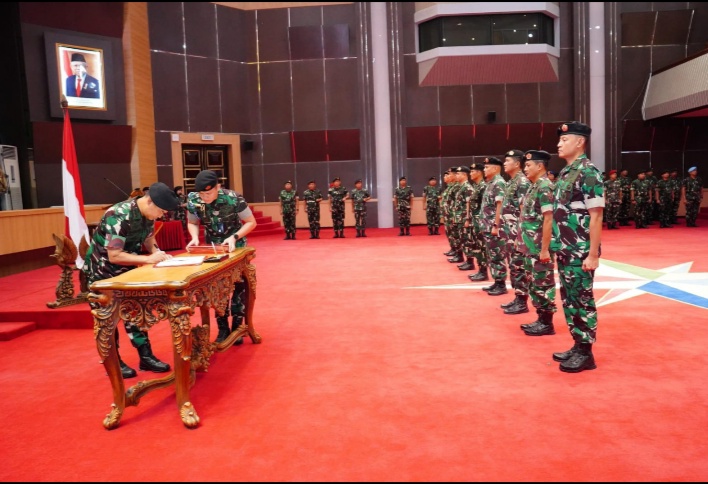 Panglima TNI dalam sambutannya yang dibacakan oleh Kasum TNI mengingatkan bahwa dalam serah terima jabatan memiliki dua tujuan yakni dari sisi dinamika dan sisi pembinaan. “Serah terima jabatan merupakan kebutuhan dan keharusan guna memelihara momentum performa dan tingkat kesegaran organisasi dalam mengemban tugas pokok, sedangkan dari sisi pembinaan, serah terima jabatan pada organisasi TNI merupakan bagian dari pembinaan personel dalam rangka meningkatkan kapasitas dan kualitas kinerja sesuai dengan peran, tugas pokok dan fungsi organisasi,” ungkapnya.