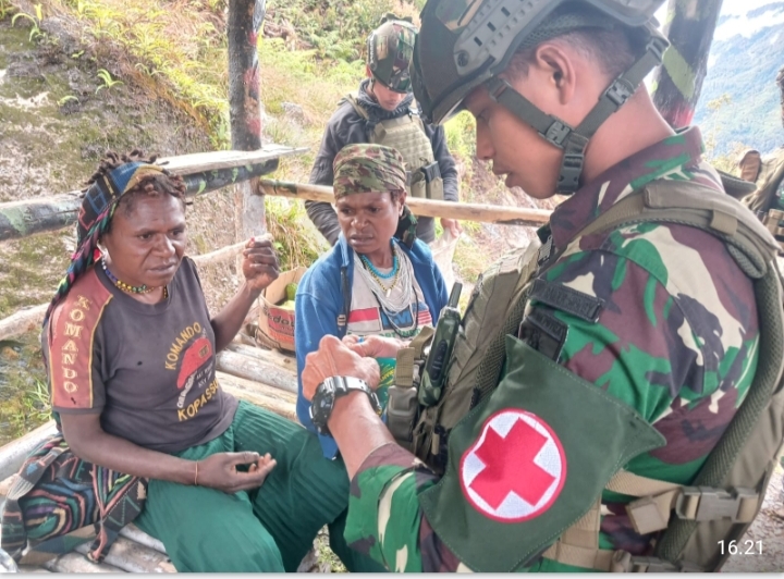 [ SUGAPA INTAN JAYA ] –Klivetvindonesia.com- Satuan Tugas Batalyon Infanteri (Satgas Yonif) Raider 509/Balawara Yudha Kostrad merupakan salah satu Satuan Jajaran Komando Operasi TNI (KOOPS TNI) HABEMA yang sedang melaksanakan tugas Operasi Pengamanan Perbatasan (Opspamtas) Mobil RI-PNG, khususnya di wilayah Kabupaten Intan Jaya. Pada hari Sabtu, 10 Agustus 2024, Satgas Yonif 509 Kostrad menggelar Kegiatan Teritorial bertajuk “Pengobatan Gratis” bagi warga Kampung Bilogai, Distrik Sugapa. Kegiatan Teritorial ini dilakukan dalam rangka membantu kesulitan warga setempat dalam bidang kesehatan, yang merupakan salah satu kebutuhan dasar masyarakat.