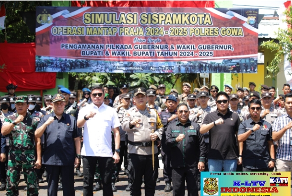 –klivetvindonesia.com– Polres Gowa menggelar simulasi Sistem Pengamanan Kota (Sispamkota) sebagai bagian dari persiapan menjelang Pilkada 2024 -2025. Kegiatan ini berlangsung di depan Kantor Bupati Gowa dan DPRD Gowa, Jalan Masjid Raya, Kelurahan Sungguminasa, Kecamatan Somba Opu, Kabupaten Gowa, Sabtu, (10/08/2024).