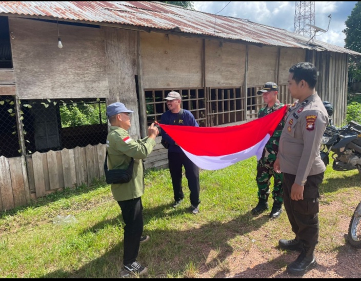 Kapuas Hulu KLTV INDONESIA- Menjelang Hari Ulang Tahun Kemerdekaan ke 79 Republik Indonesia, satgas pamtas RI-Malaysia bersama Instansi lainnya dan masyarakat perbatasan kibarkan bendera merah putih secara serentak di wilayah lintas batas Badau, Sebindang, Kecamatan Badau, Kabupaten Kapuas hulu, Sabtu (10/8/2024).